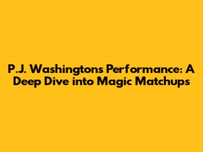 Matchup-Specific Insights: How P.J. Washington Navigates the Magic