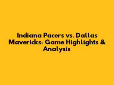 Pacers Vs. Mavericks: Game Highlights & Analysis