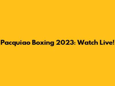 Pacquiao Boxing 2023: Watch Live!