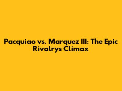 Pacquiao vs. Marquez III: The Epic Rivalry's Climax