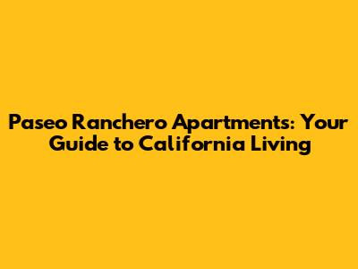 Paseo Ranchero Apartments: Your Guide To California Living