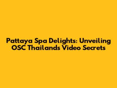 Pattaya Spa Delights: Unveiling OSC Thailand's Video Secrets