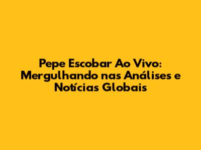 Pepe Escobar Ao Vivo: Análise Profunda E Notícias Do Mundo