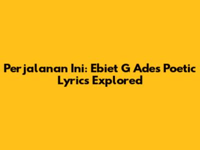Ebiet G Ade, the legendary Indonesian singer-songwriter, is renowned for his poignant lyrics and evocative melodies. His song "Perjalanan Ini" (This Journey) stands as a testament to his artistry, weaving a tapestry of reflection, introspection, and the human experience. Let's dive deep into the lyrical landscape of "Perjalanan Ini", unpacking its rich imagery, emotional depth, and enduring message. Guys, get ready to explore the heart and soul of this timeless classic!