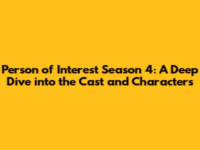 Hey guys! Are you a fan of the awesome show Person of Interest? If you are anything like me, you're probably always looking for more info about the show. Well, let's dive deep into season 4, focusing on the cast and the amazing characters that brought the story to life. We're going to cover everything from the main players to some of the supporting characters who made season 4 so memorable. Get ready for a trip down memory lane, as we explore who played who, and what made season 4 so captivating. So, buckle up, grab your favorite snacks, and let’s get started.