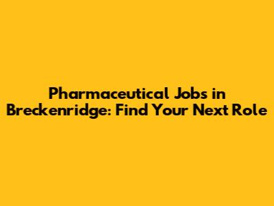 Pharmaceutical Jobs In Breckenridge: Find Your Next Role