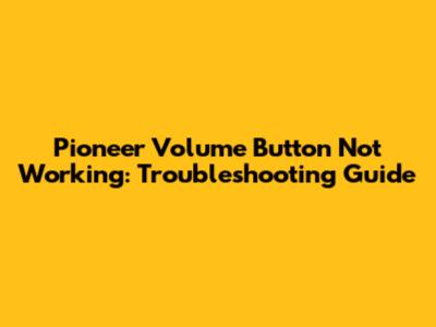 Pioneer Volume Button Problems: Quick Fixes & Troubleshooting