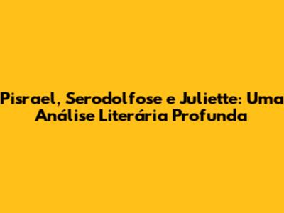 Pisrael, Serodolfose E Juliette: Uma Análise Literária Profunda