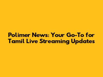 Polimer News: Your Go-To For Tamil Live Streaming Updates