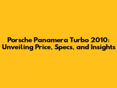 Understanding the 2010 Porsche Panamera Turbo Price Landscape