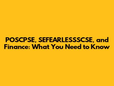 POSCPSE, SEFEARLESSSCSE, And Finance: What You Need To Know