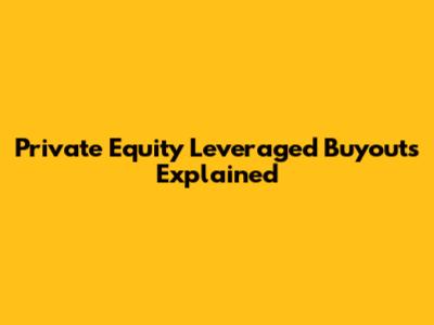 Private Equity Leveraged Buyouts Explained