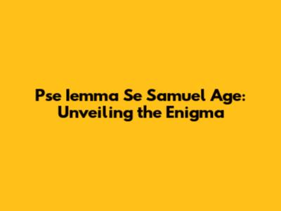 Pse Iemma Se Samuel: Unveiling The Enigma Of Age