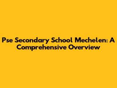 Pse Secondary School: Exploring Education In Mechelen