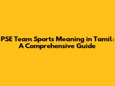 PSE Team Sports Meaning In Tamil: A Comprehensive Guide
