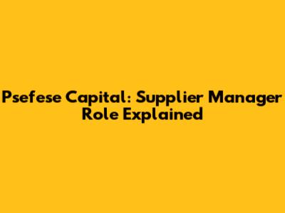 Psefese Capital: Supplier Manager Role Explained