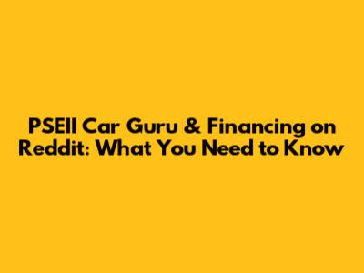 PSEII Car Guru & Financing On Reddit: What You Need To Know