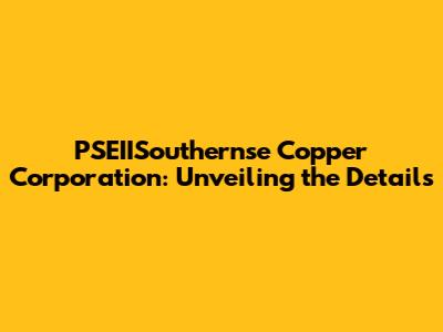 Hey everyone! Today, we're diving deep into PSEIISouthernse Copper Corporation, exploring everything from its operations to its potential impact. Buckle up, because we're about to embark on a journey through the world of copper, its extraction, and the key players involved. Let's get started, shall we?