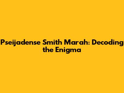 Pseijadense Smith Marah: Unraveling The Mystery