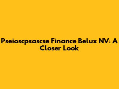 Pseioscpsascse Finance Belux NV: A Closer Look
