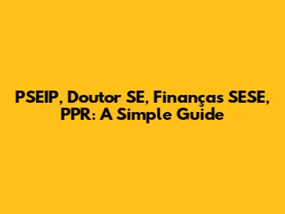 PSEIP, Doutor SE, Finanças SESE, PPR: A Simple Guide