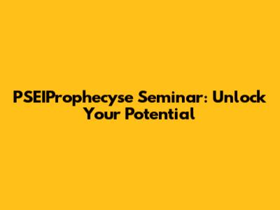 PSEIProphecyse Seminar: Unlock Your Potential