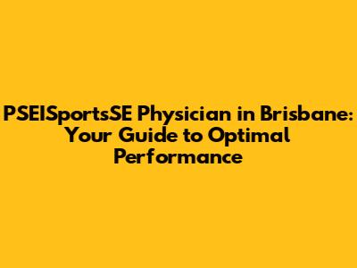 PSEISportsSE Physician In Brisbane: Your Guide To Optimal Performance
