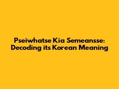 Pseiwhatse Kia Semeansse: Decoding Its Korean Meaning