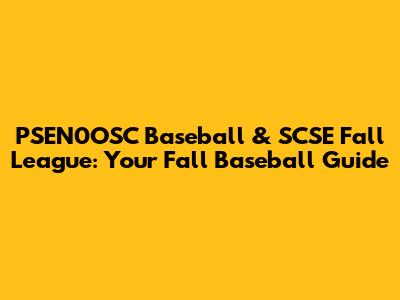 PSEN0OSC Baseball & SCSE Fall League: Everything You Need To Know