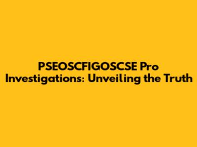 PSEOSCFIGOSCSE Pro Investigations: Unveiling The Truth