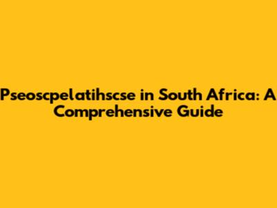 Pseoscpelatihscse In South Africa: A Comprehensive Guide