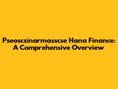Pseoscsinarmasscse Hana Finance: A Comprehensive Overview