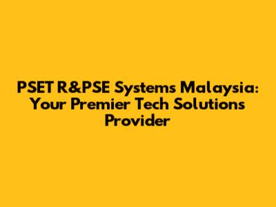 PSET R&PSE Systems Malaysia: Your Tech Solutions Partner