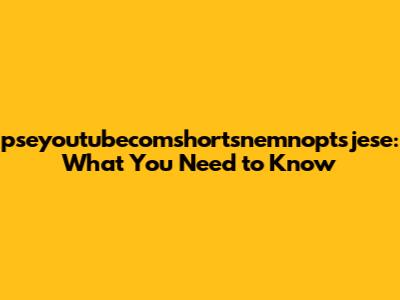 Pseyoutubecomshortsnemnoptsjese: What You Need To Know