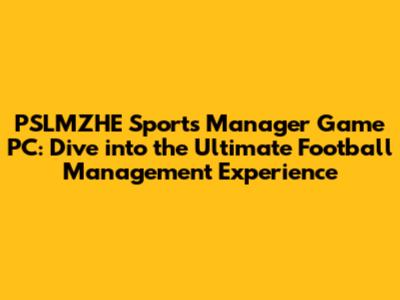 PSLMZHE Sports Manager Game PC: Dive Into The Ultimate Football Management Experience