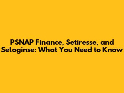 PSNAP Finance, Setiresse, And Seloginse: What You Need To Know