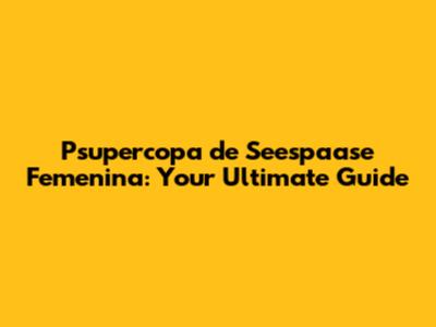 Psupercopa De Seespaase Femenina: Your Ultimate Guide