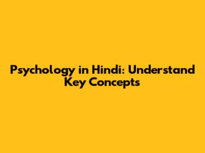 Psychology In Hindi: Understand Key Concepts