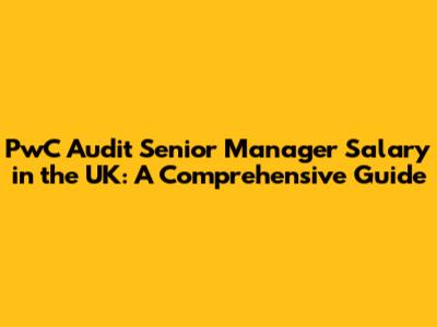 Generally, a Senior Manager in Audit at PwC in the UK can expect a base salary ranging from £80,000 to £120,000. In London, this range may be slightly higher, potentially reaching £90,000 to £130,000 or more for highly experienced individuals with specialized skills.