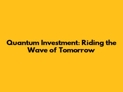 Quantum Investment: Riding The Wave Of Tomorrow
