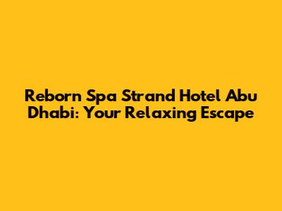 Hey guys! Are you looking for the ultimate relaxing escape in Abu Dhabi? Look no further than the Reborn Spa Strand Hotel! This place is seriously a hidden gem, offering a perfect blend of luxurious accommodations, rejuvenating spa treatments, and stunning beachfront views. Whether you're planning a romantic getaway, a family vacation, or just need some serious me-time, the Reborn Spa Strand Hotel has something for everyone. In this article, we'll dive deep into what makes this hotel so special, from its amazing amenities to its prime location. So, grab a comfy seat, and let's explore the Reborn Spa Strand Hotel together!