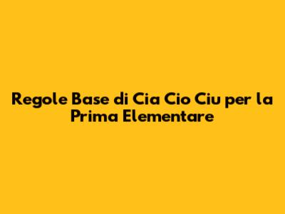 Regole Base Di Cia Cio Ciu Per La Prima Elementare