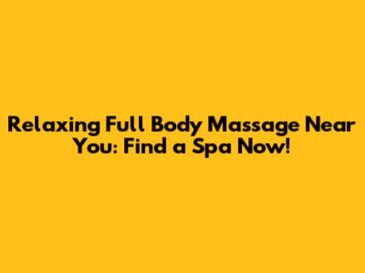 Relaxing Full Body Massage Near You: Find A Spa Now!