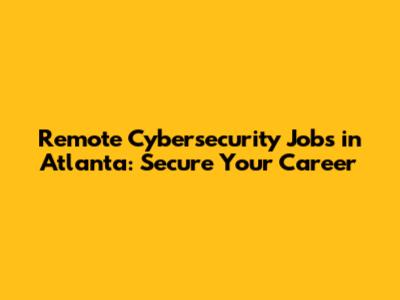 Remote Cybersecurity Jobs In Atlanta: Secure Your Career