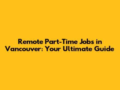Remote Part-Time Jobs In Vancouver: Your Guide
