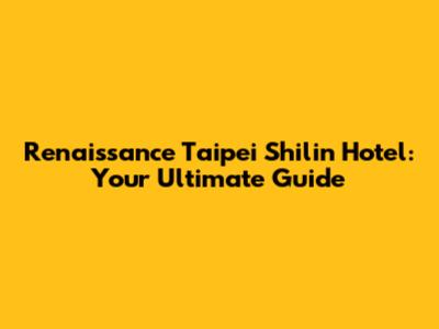 Renaissance Taipei Shilin Hotel: Your Ultimate Guide