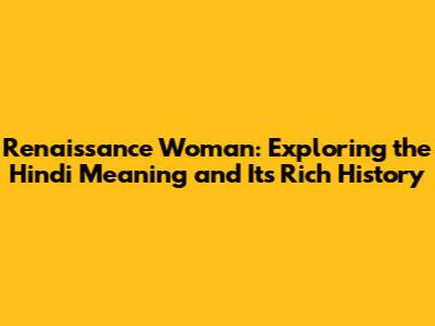 Renaissance Woman: Unveiling The Hindi Meaning & History