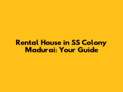 Rental House In SS Colony Madurai: Your Guide