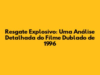 Resgate Explosivo: O Filme Dublado De 1996 Que Você Precisa Ver