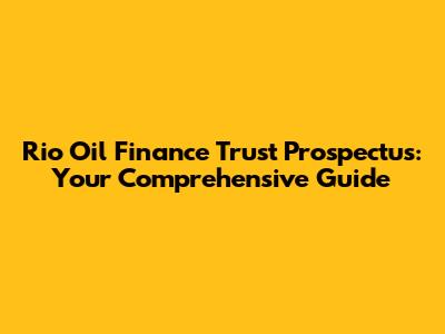 Rio Oil Finance Trust Prospectus: Everything You Need To Know